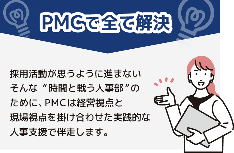 経営と人事の両視点から、「採用・定着・活躍」の仕組みづくりを支援します。